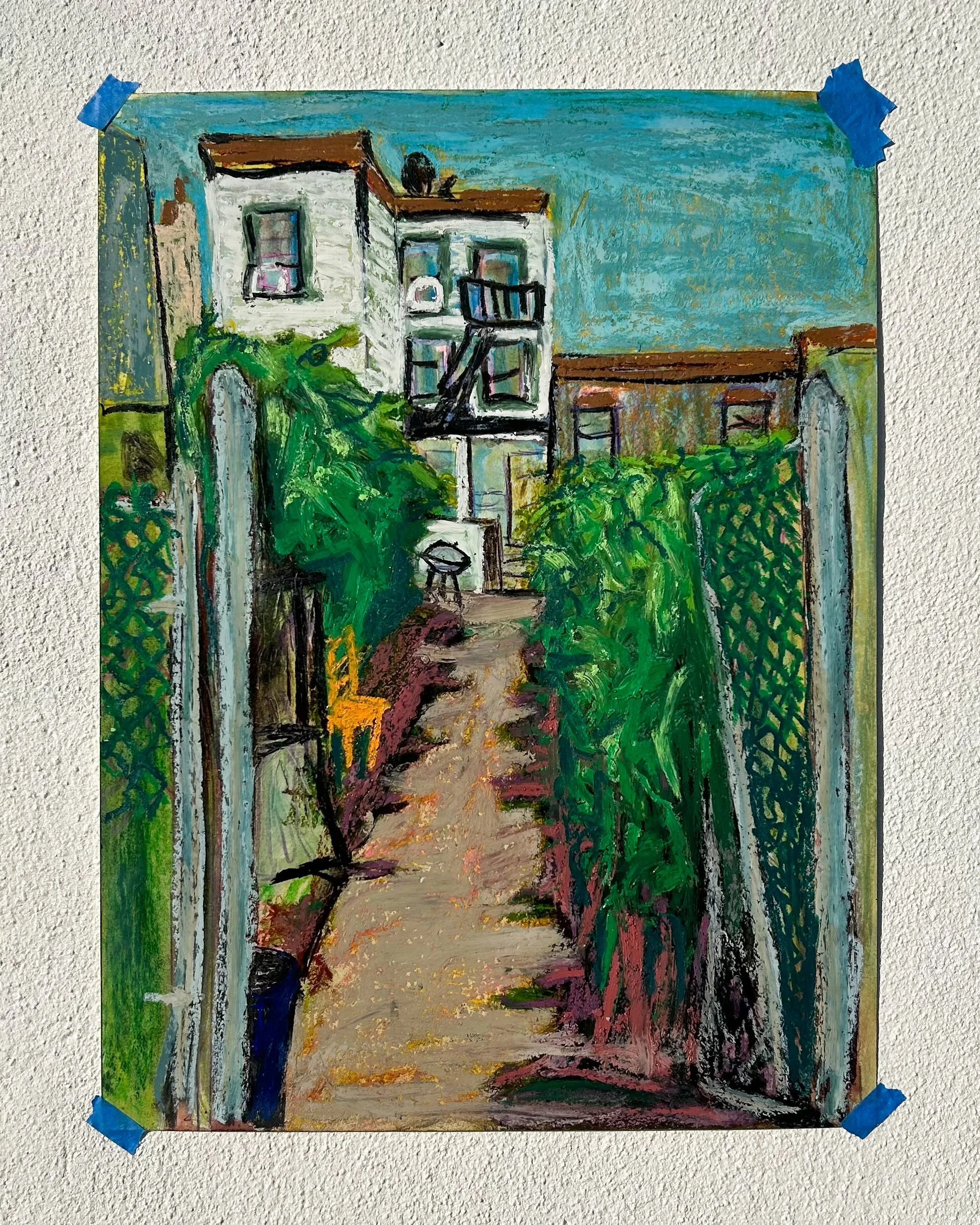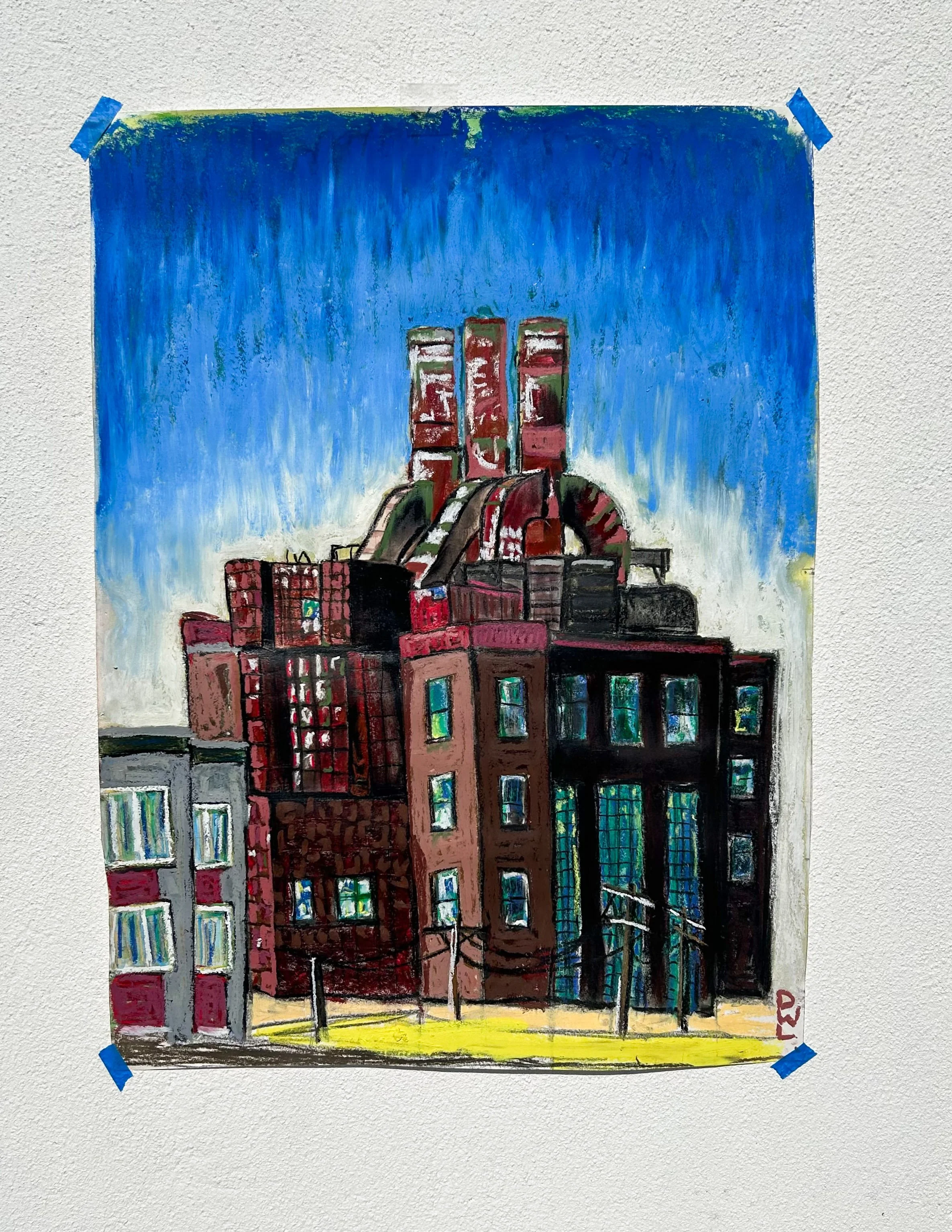 Side View of Row Home, 2024, Gouache, Chalk Pastel and Oil Pastel on paper - 24"x 18"