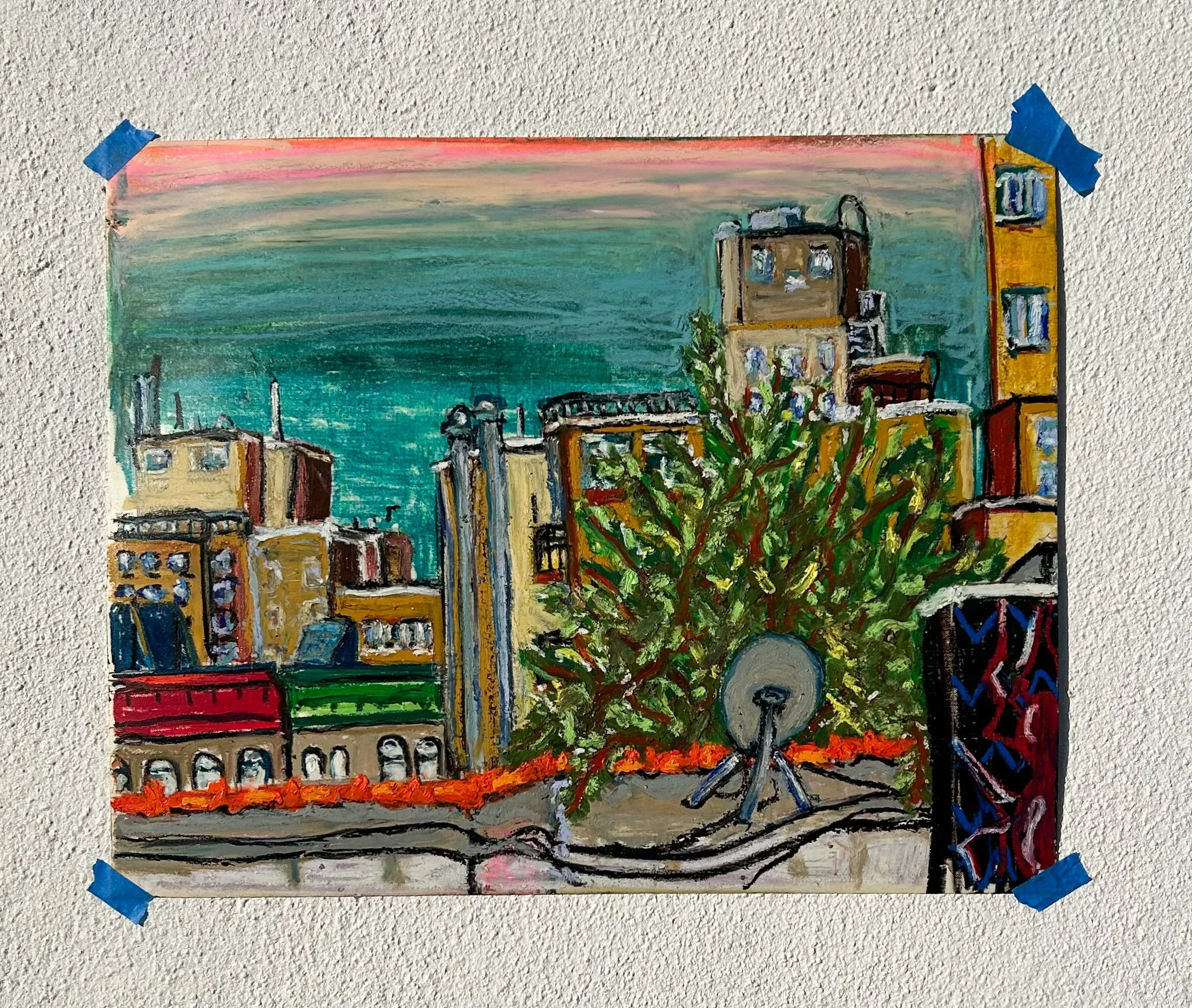 Franklin Ave Skyline, 2024, Chalk Pastel and Oil Pastel on paper - 20" x 16"