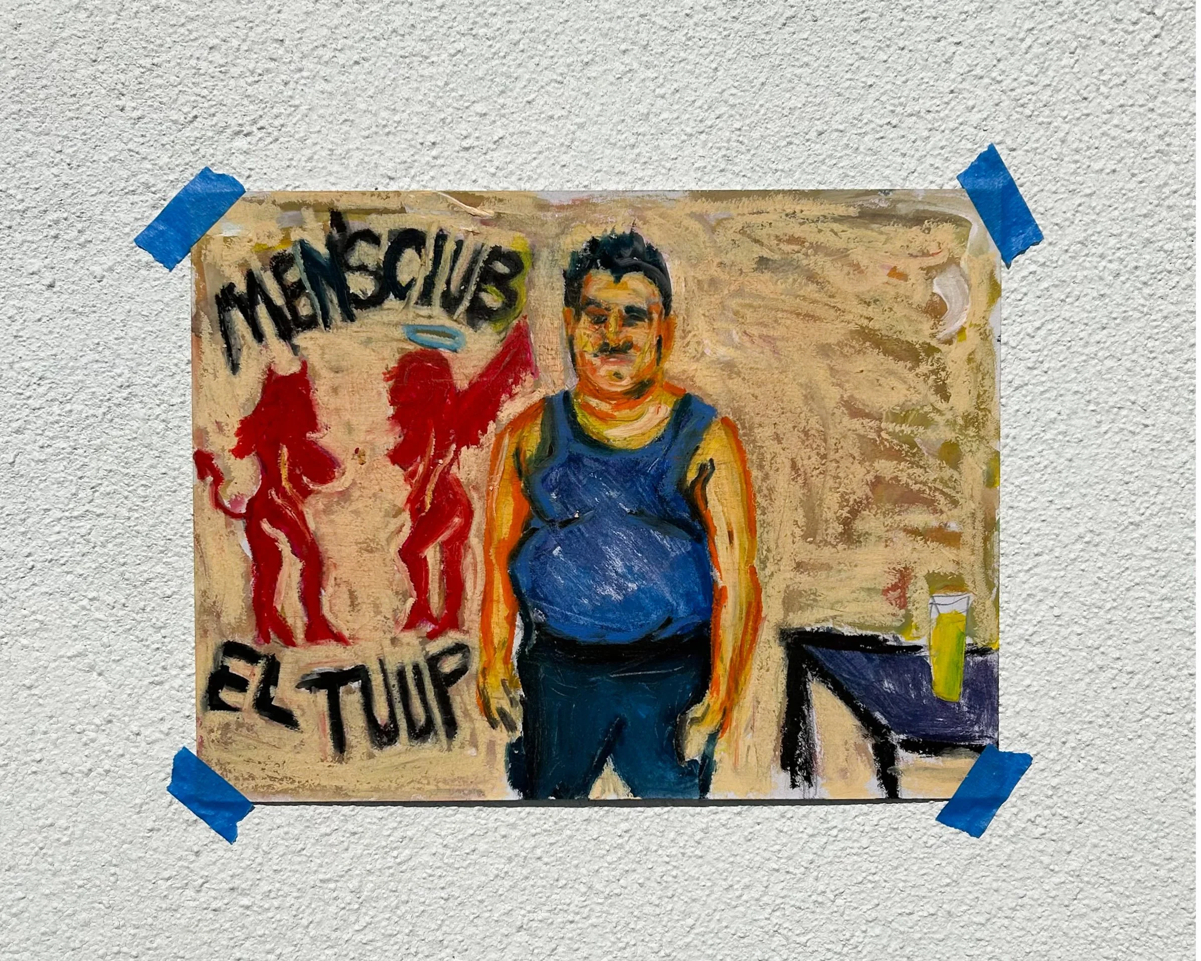 Men's Club Bouncer - 2022, Watercolor and Oil Pastel on paper - 12" x 9"