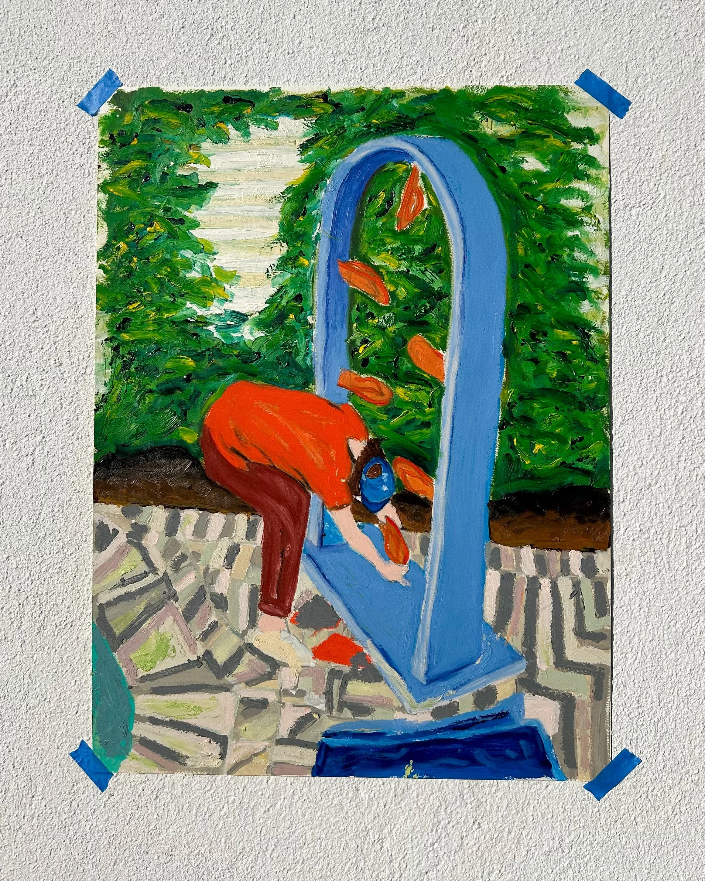 Art Installation by Pool, 2022, Acrylic, Oil Paint and Oil Stick on paper - 24" x 18"