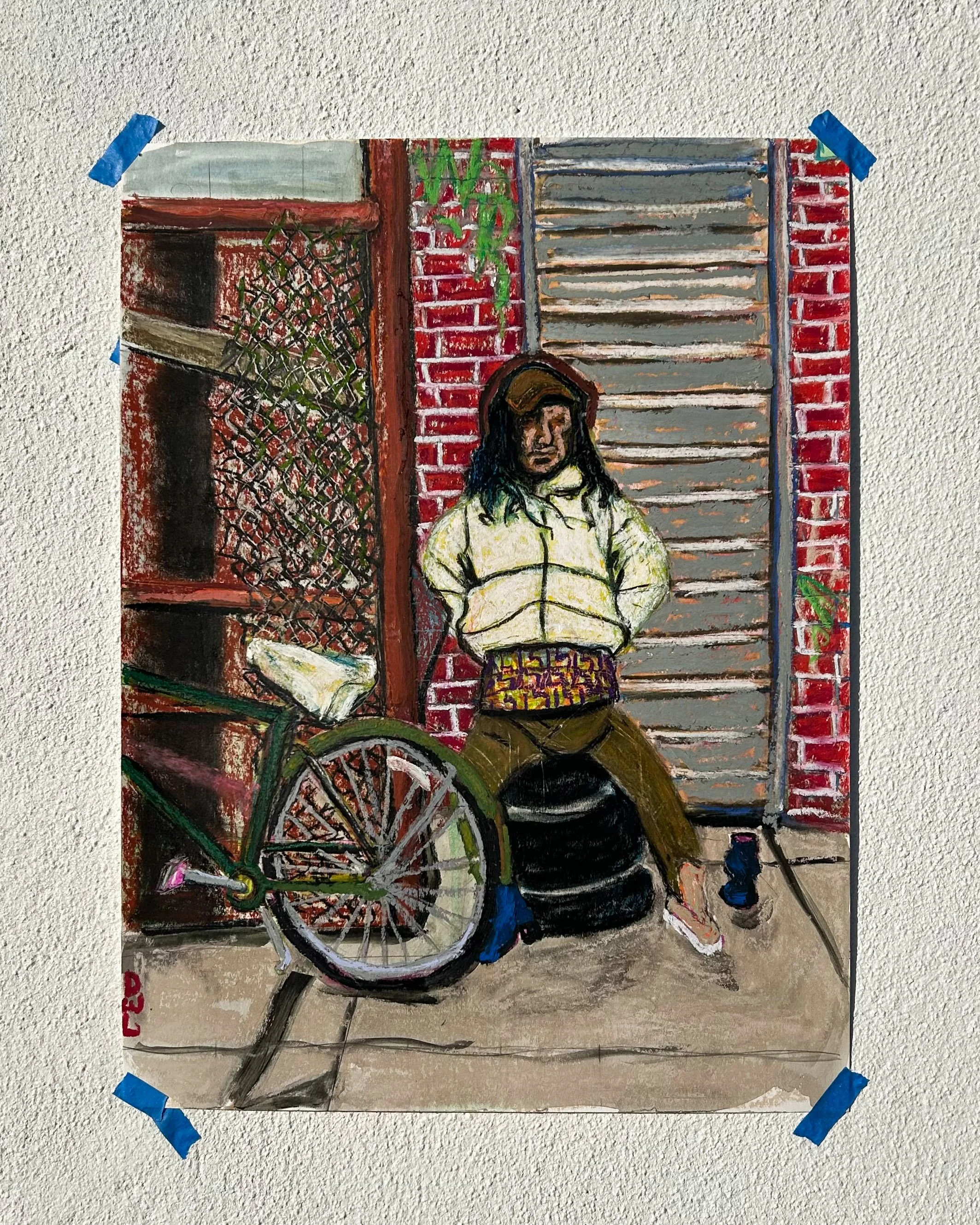 Street Mannequin, 2024, Gouache, Chalk Pastel and Oil pastel on paper - 24" x 18"