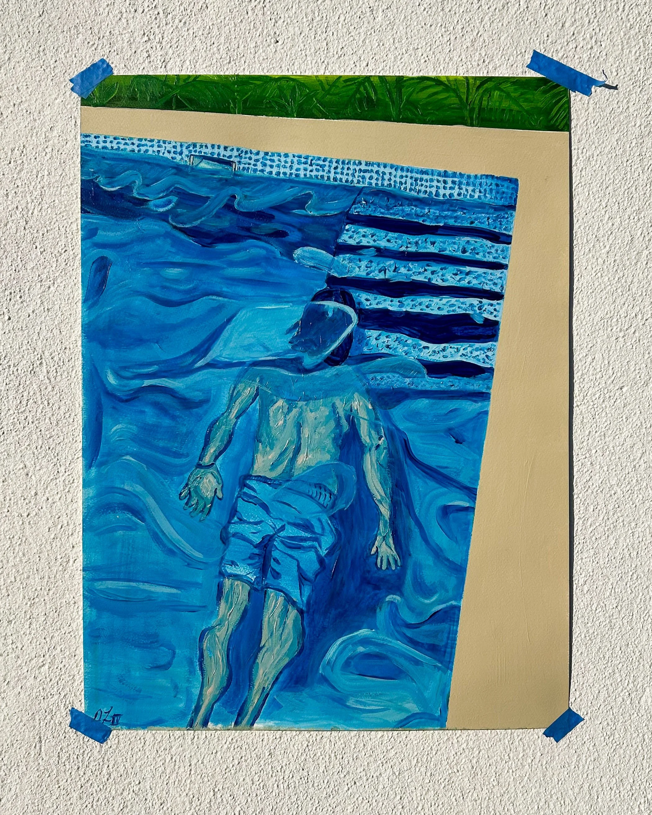 Cool in the Pool, 2021, Acrylic on paper - 24" x 18"