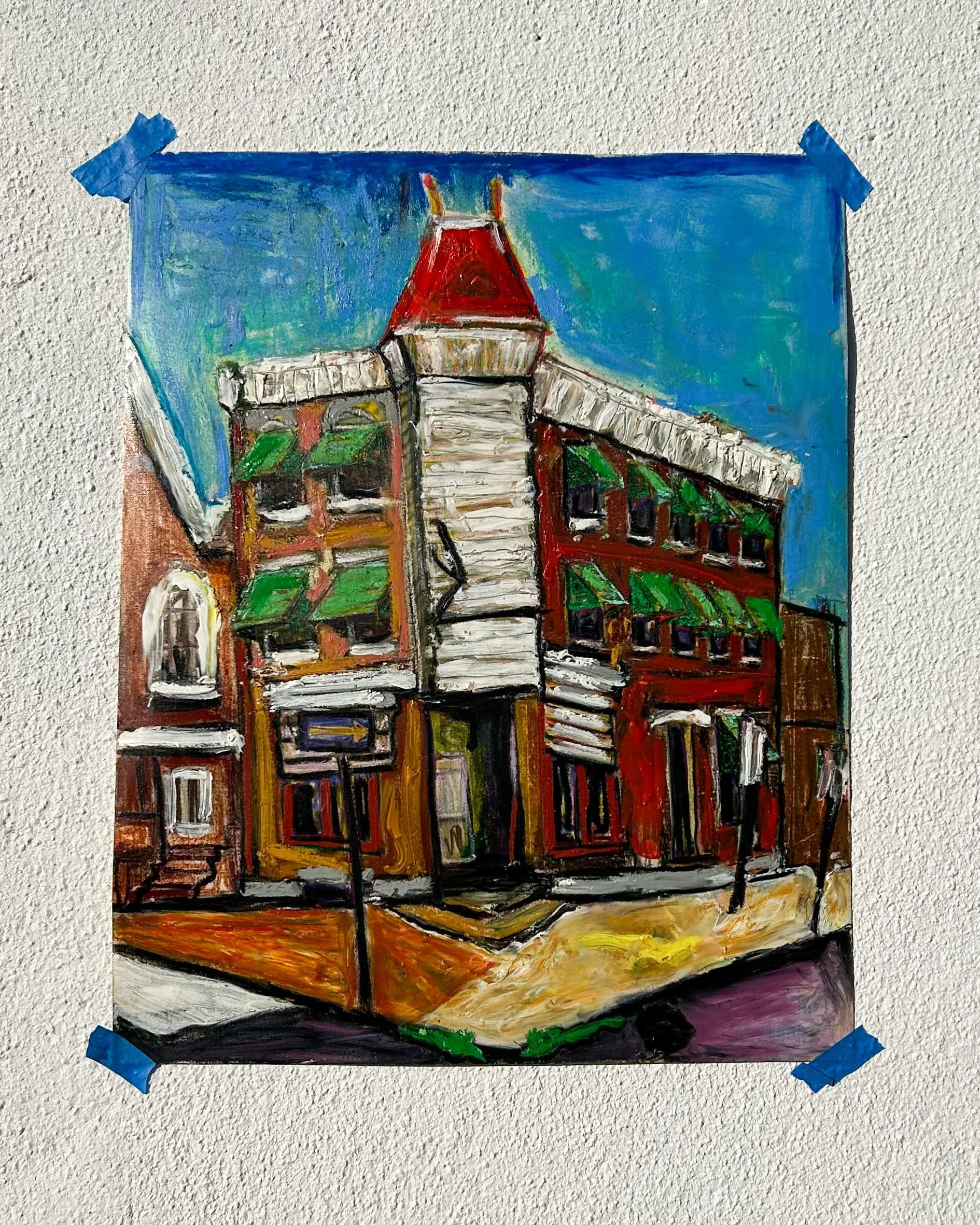 South Philly Corner, 2024, Watercolor, Chalk Pastel and Oil Pastel on paper - 20" x 16"