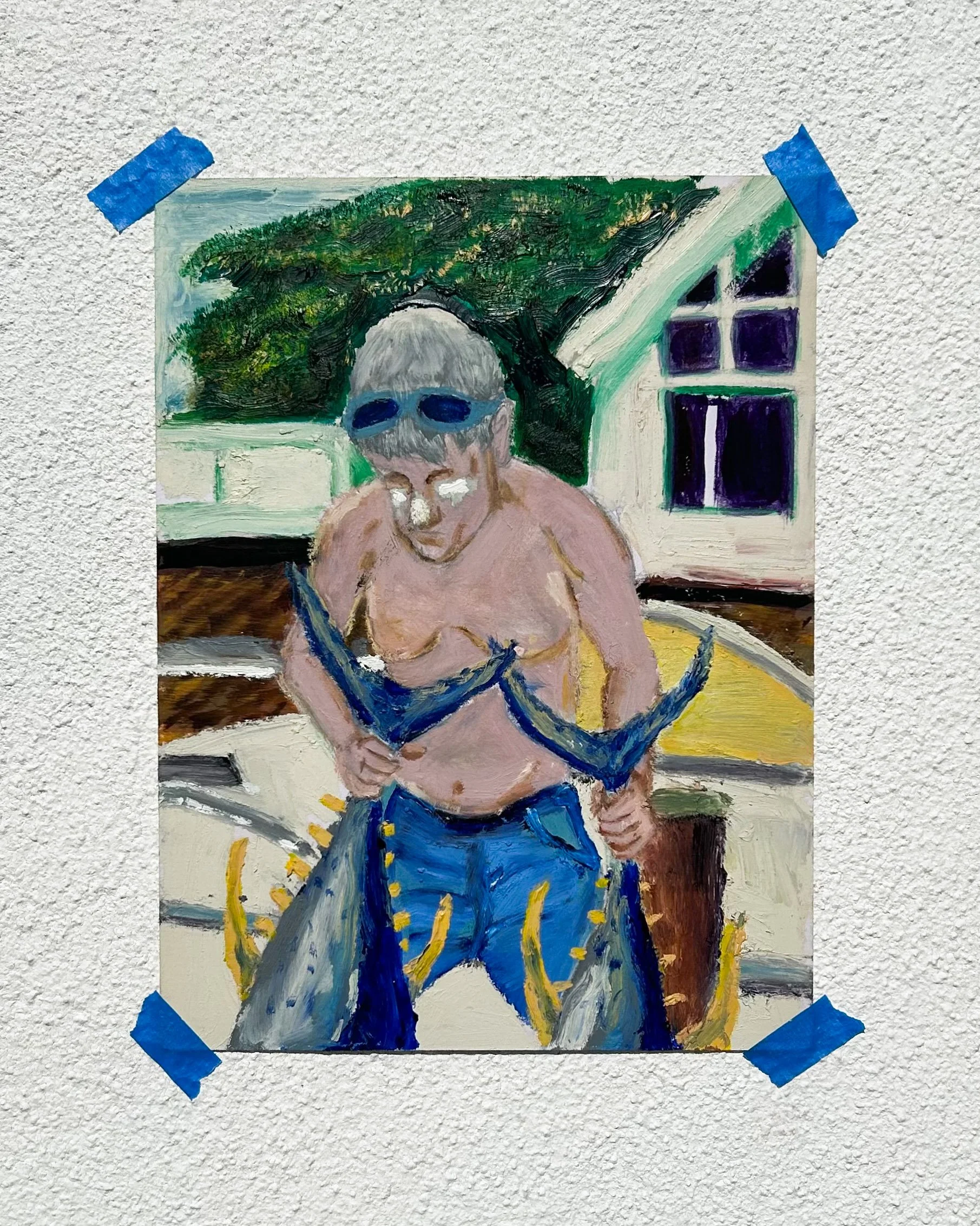 Two Tuna, 2022, Oil Paint on paper - 12" x 9"