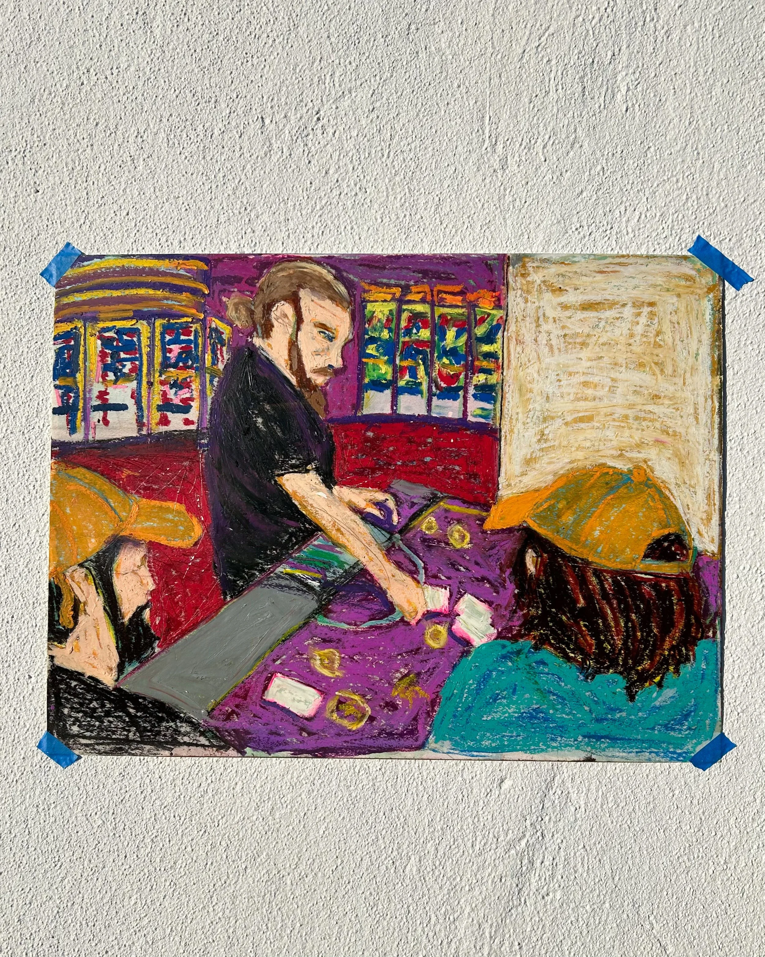 Blackjack in New Orleans, 2023, Gouache, Chalk Pastel and Oil Pastel on paper - 24" x 18"