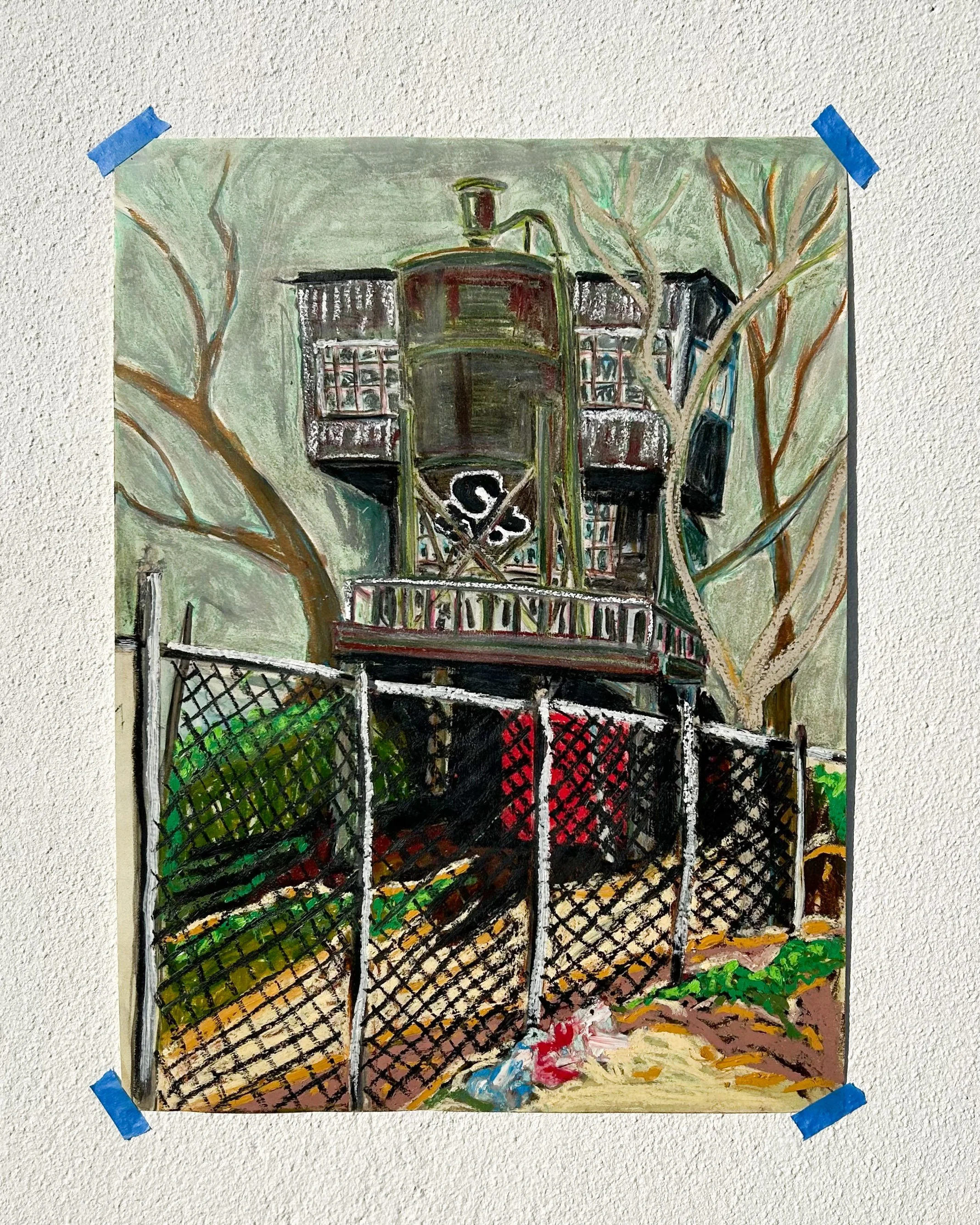 Street Fort, 2024, Watercolor, Chalk pastel and Oil Pastel on paper - 24"x 18"