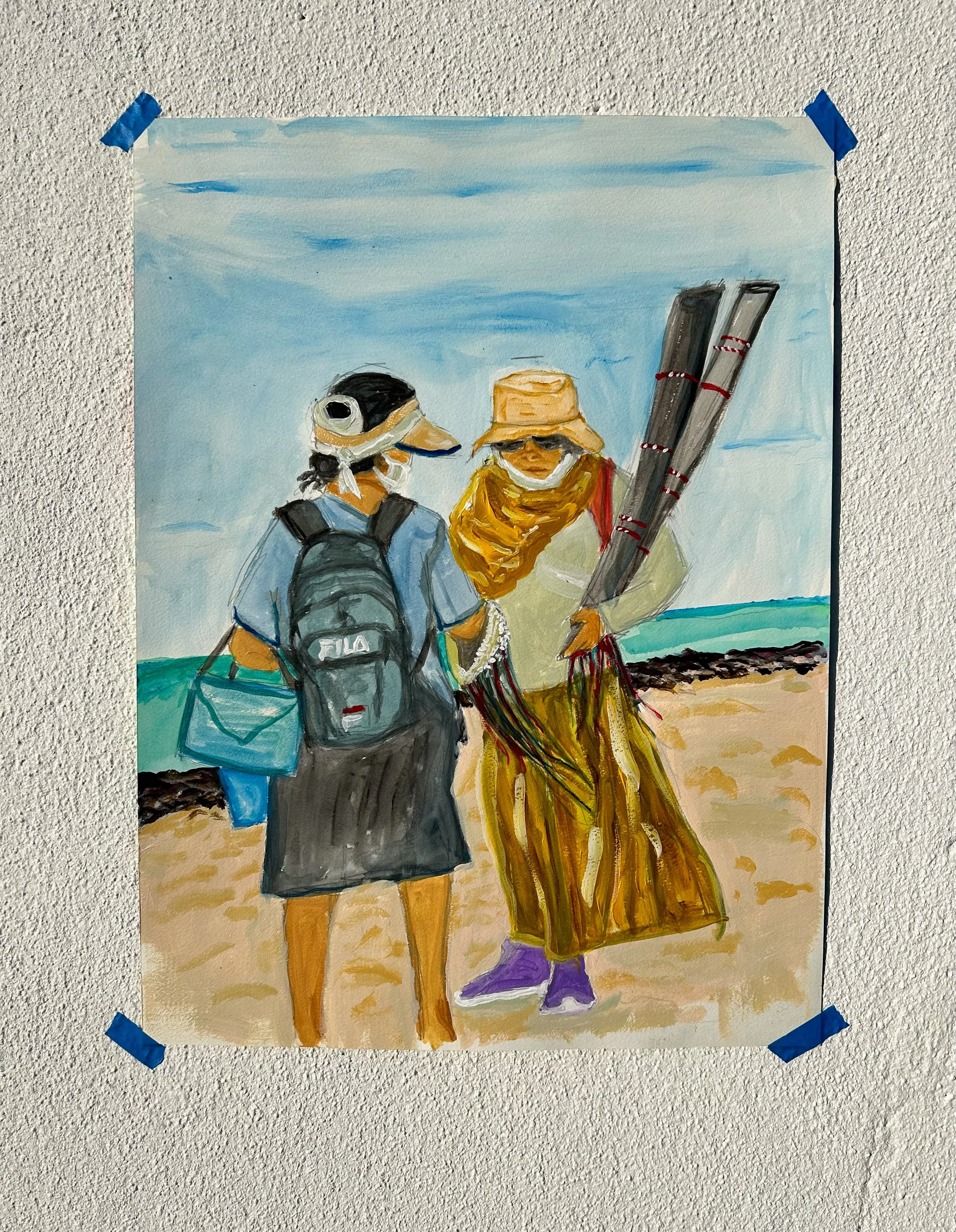 Business Women on Beach, 2022, Watercolor and Acrylic on paper - 24" x 18"