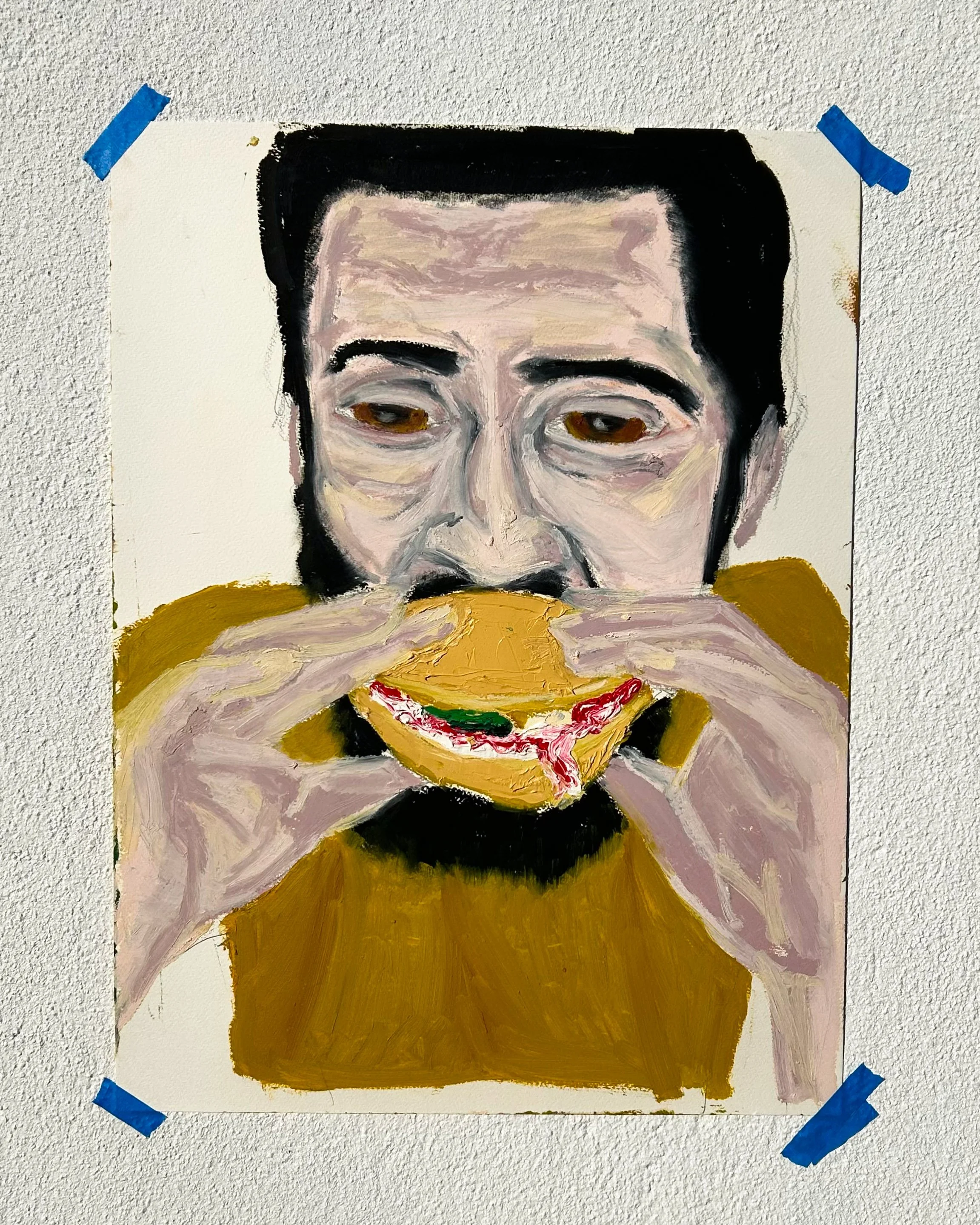 McChicken Zombie, 2021, Oil Stick on paper - 24" x 18"